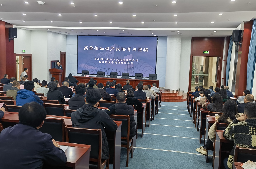 下午,舉辦湖北省“百縣萬企”知識產(chǎn)權(quán)大培訓(xùn)通城縣專場活動,邀請60家科技型企業(yè),針對企業(yè)高價值知識產(chǎn)權(quán)培育挖掘、商標品牌戰(zhàn)略布局與維權(quán)等方面開展培訓(xùn),進一步提升了企業(yè)知識產(chǎn)權(quán)創(chuàng)新能力。